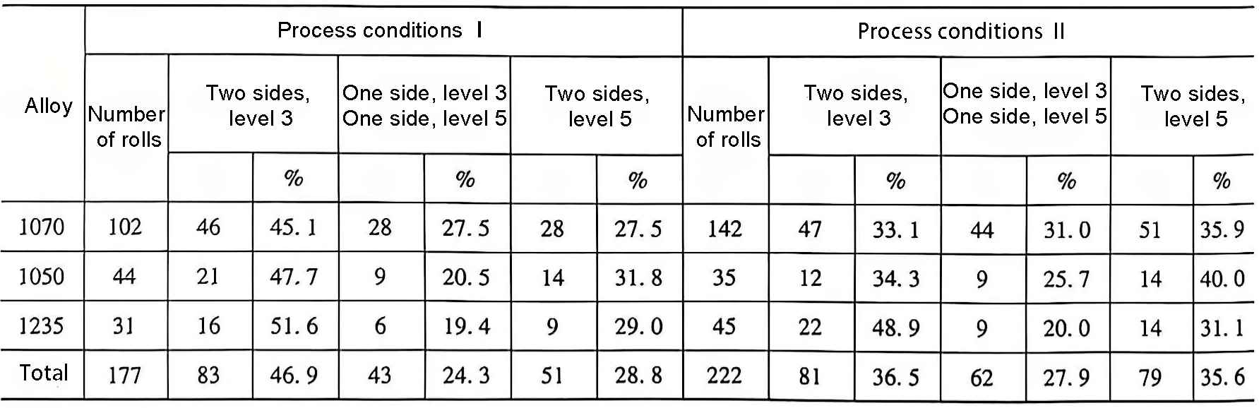 Table 2 Cast and rolled grain sizes of 1070, 1050 and 1235 alloys under the same process conditions