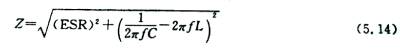 🍬The impedance of the aluminum electrolytic capacitor is actually the sum of the capacitive reactance, ESR, and inductive reactance in the equivalent circuit of Figure 5.15. The relationship between impedance Z and capacitive reactance, ESR, and inductive reactance is
