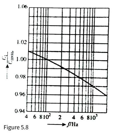 🍐The effective capacitance of an aluminum electrolytic capacitor decreases with increasing frequency, as shown in Figure 5.8.