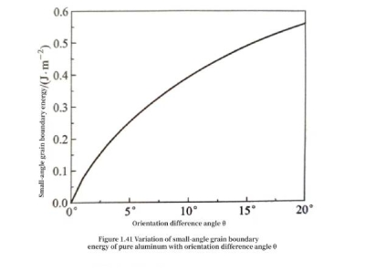 From formula (1.37), it can be seen that from θ=0, the grain boundary energy ygbincreases with the increase of θ. When θ is very large, the dislocations on the grain boundary are too close and interfere with each other. The simple dislocation energy can no longer explain the interface energy. Therefore, formula (1.37) is only applicable to small angle