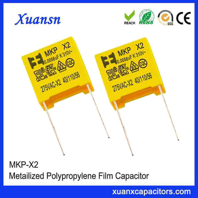 0.0056uf 257vac x2 capacitor is made of high temperature resistant vinyl shell, epoxy resin package, flame retardant performance (UL94V-0), suitable for high frequency, DC, AC, coupling, jumper pulsating circuits.
