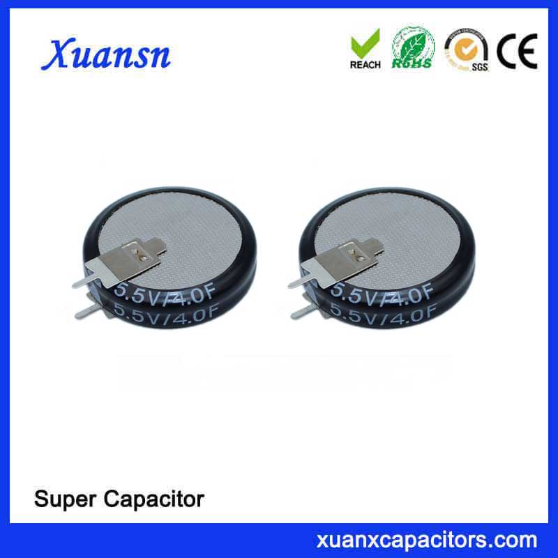 5.5 v supercapacitor 4.0f Button capacitors are also called electric double-layer capacitors. They are named after a small button because of their external dimensions. This type of capacitor is relatively compact, convenient and convenient. Because of its small size, it is more suitable for smaller appliances.