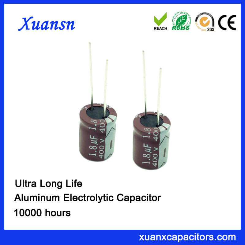 - 1.8uf 400v long life radial aluminum electrolytic capacitor
