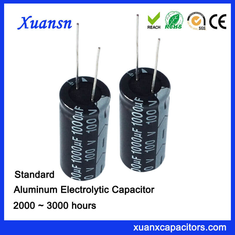 Standard 1000uf 100v electrolytic capacitors is suitable for charger, adapter, air conditioning and rear projection TV.