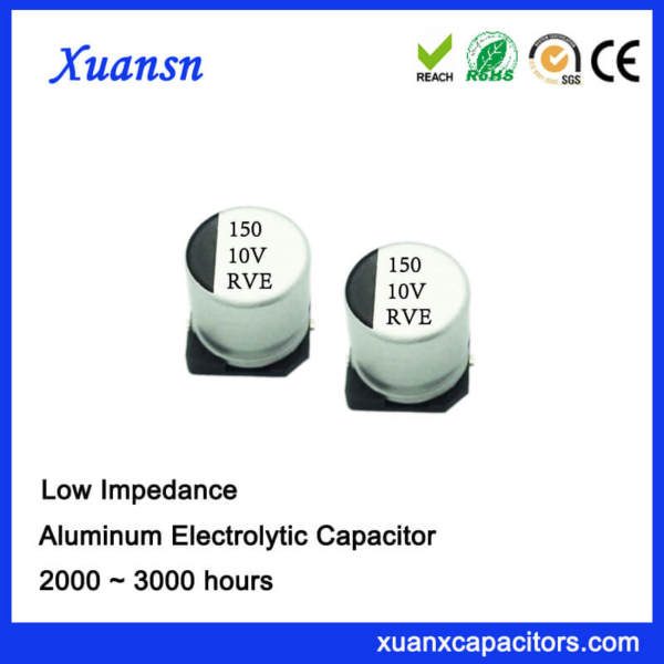 Low impedance 100uf 16v SMD electrolytic capacitor is available for high density surface mounting and reflow soldring, and it has high stability and reliability.