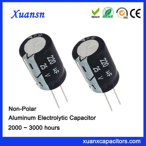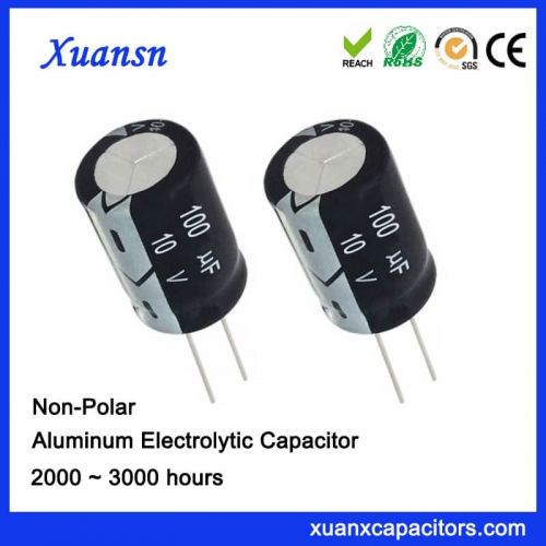 100UF Non-Polar Capacitor 10V is our 2000 to 3000 hours non-polarity series. The non polarity radial alumium electrolytic capacitor is used in circuits with reversing polarity