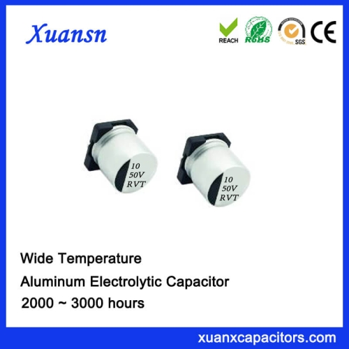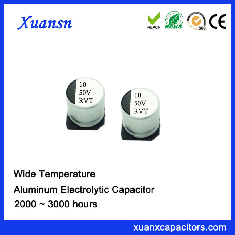 10uf 50v SMD Aluminum Electrolytic Capacitor is one of our main products, its operating temperature range is -55℃ to +105℃ standard product, its size is 5*5.4 and 6.3*5.4 mm, and its rated ripple current is 17mArms and 25mArms at 120Hz, 105℃.