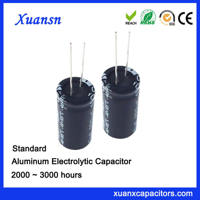Standard radial aluminuim electrolytic capacitor is suitable for charger, adapter, air conditioning and rear projection TV.