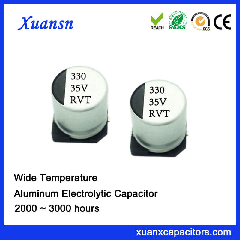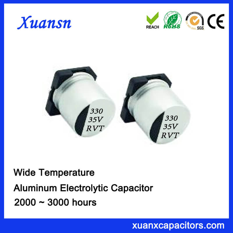330UF 35V Chip Type Aluminum Electrolytic Capacitor is our Standard 2000 to 3000hours series. The SMD aluminum electrolytic capacitor is suitable for suitable for reflow soldering and high density surface assembly.