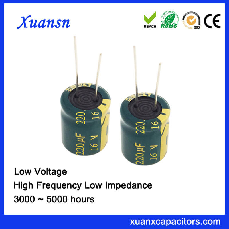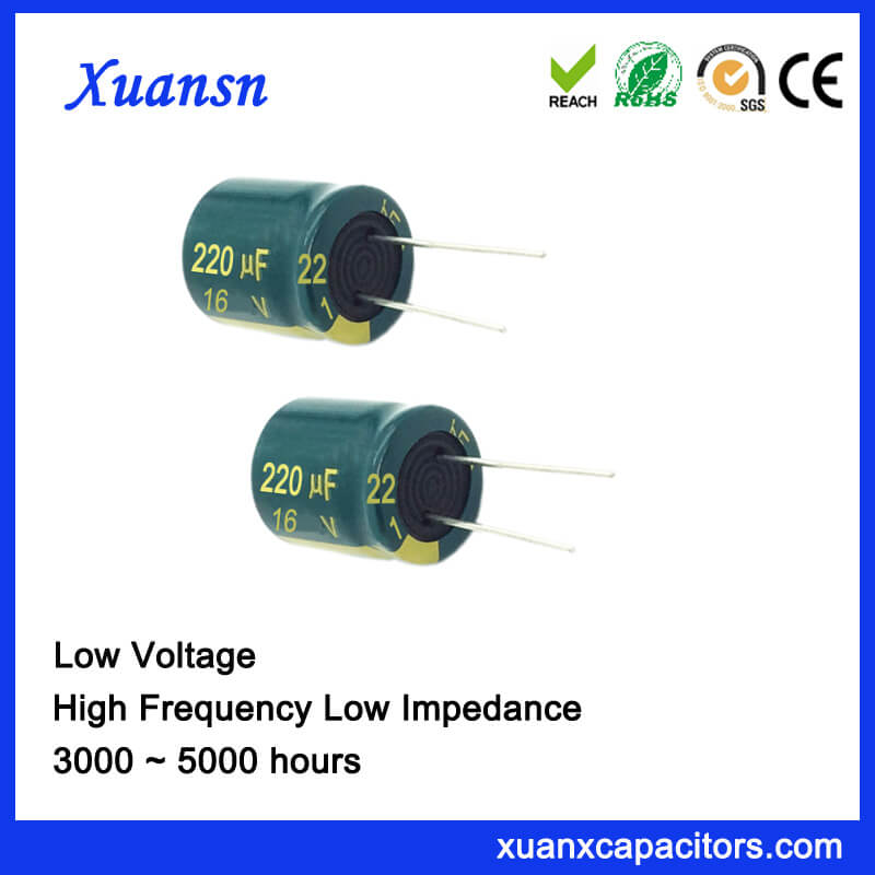 220uf 16V Capacitor High Frequency is our low impedance electrolytic capacitor series. Its laod life is 3000 to 5000hours at 120Hz 105℃