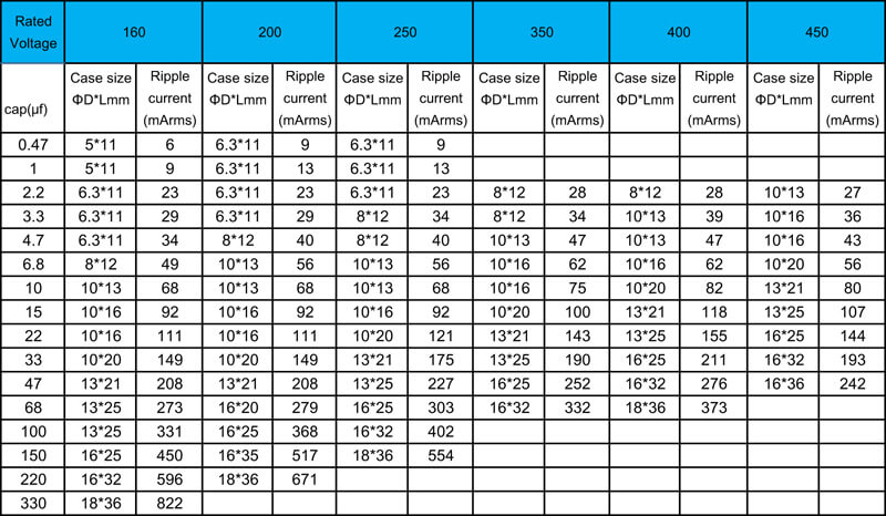2.2uf 400v Electrolytic Capacitor,its size is 8*12mm,its ripple current are 28mArms at 85℃ 120Hz.
