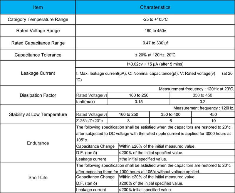 High Voltage Capacitor 2.2UF 400V is our high voltage High frequency and low impedance electrolytic capacitor series. Its laod life is 3000 to 5000hours at 120Hz 105℃.