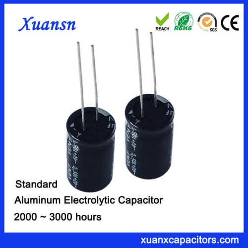 Standard radial aluminum electrolytic capacitor is suitable for charger, adapter, air conditioning and rear projection TV.
