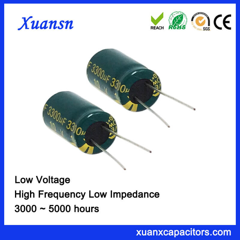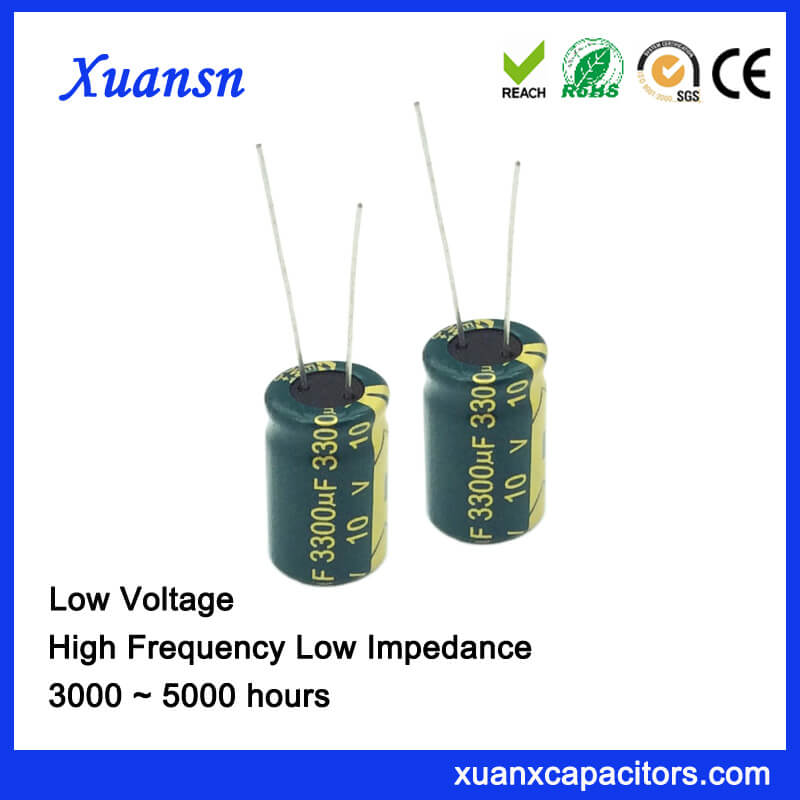 Capacitor 3300uf 10v Larger Capacitance Electrolytic is our high frequency low impedance electrolytic capacitor series. Its laod life is 5000hours at 120Hz 105℃