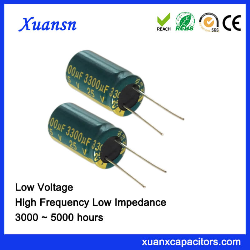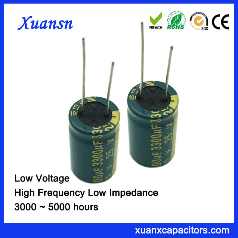 Electrolytic Capacitor 3300uf 25v For LED Power Supply is our high frequency low impedance electrolytic capacitor series. Its laod life is 5000hours at 120Hz 105℃