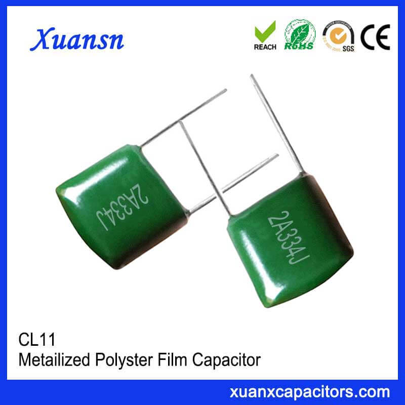 Polyester capacitor price CL11, film capacitor is the lead spot welding directly to the electrode, widely used in DC and pulse circuits of various electronic instruments such as TV sets, computers, smart electronic toys, etc.