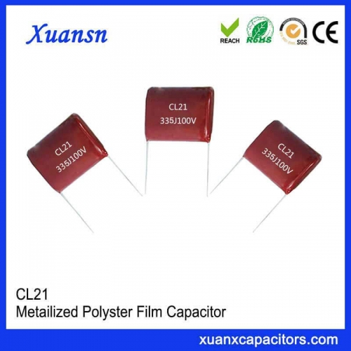 The 335J CL21 polyester film capacitor uses metallized polyester film as the medium and electrode, and is encapsulated with flame-retardant insulating material for unidirectional leads, which has excellent electrical properties.