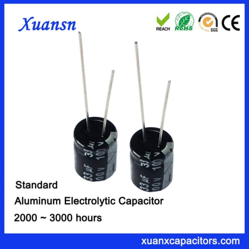 33UF 100V General Electrolytic Capacitor , our general size is 8*12mm, its ripple current is 159mAmrs at 85℃ 120Hz. And its load life is 3000 hours at 105℃.