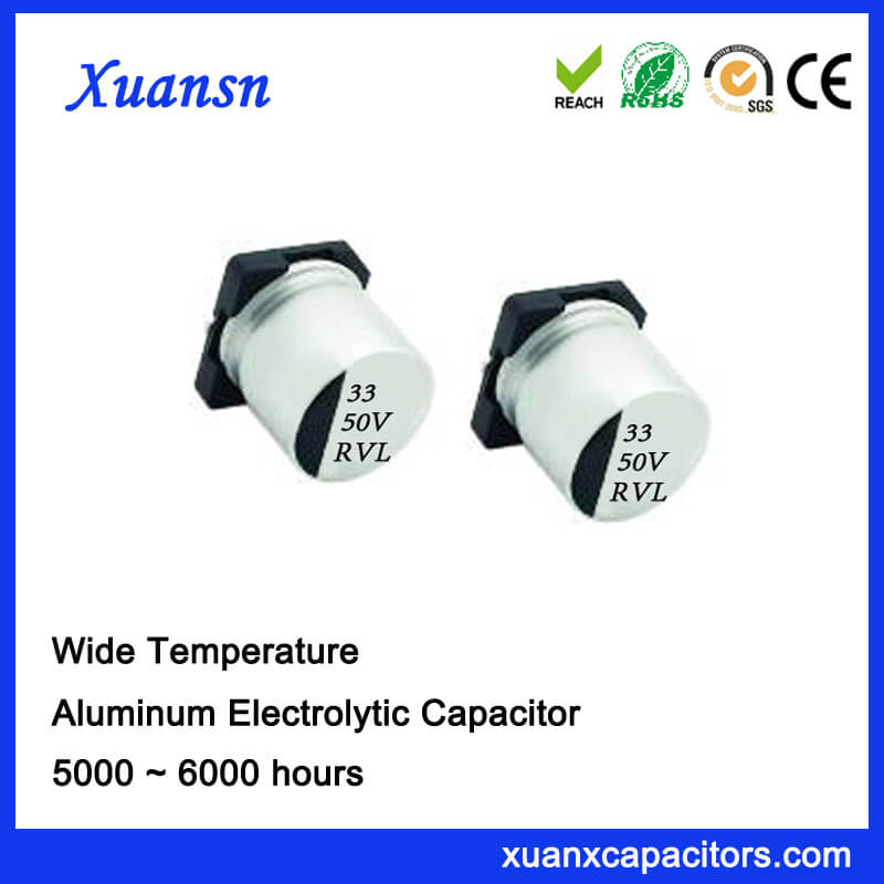 SMD Electrolytic Capacitor 33UF 50V long life smd aluminum electrolytic capacitor is available for high density surface mounting and reflow soldring, and it has high stability and reliability.