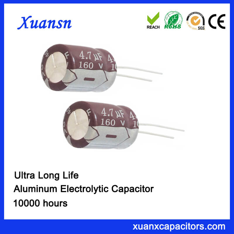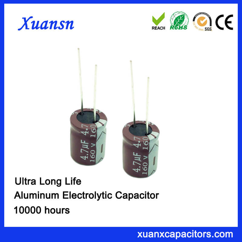 - 4.7uf 160v long life radial aluminum electrolytic capacitor