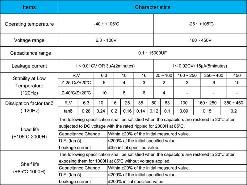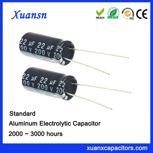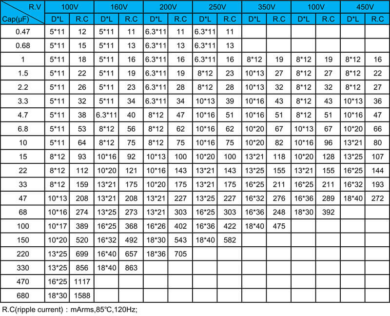 Standard radial aluminum electrolytic capacitors is suitable for charger, adapter, air conditioning and rear projection TV.