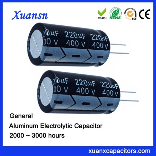 400v 220uf Electrolytic Capacitor , our general size is 22*42mm, its ripple current is 428 mAmrs at 85℃ 120Hz. And its load life is 3000 hours at 105℃.