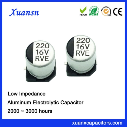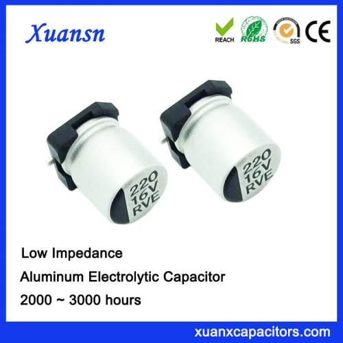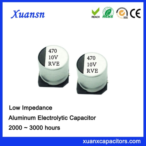 High frequency Low impedance 470uf 16v SMD electrolytic capacitor is available for high density surface mounting and reflow soldring, and it has high stability and reliability.