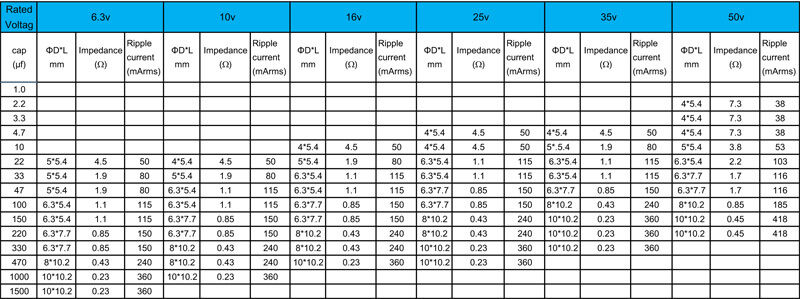 Specification of high frequency low impedance smd aluminum electrolytic capacitor