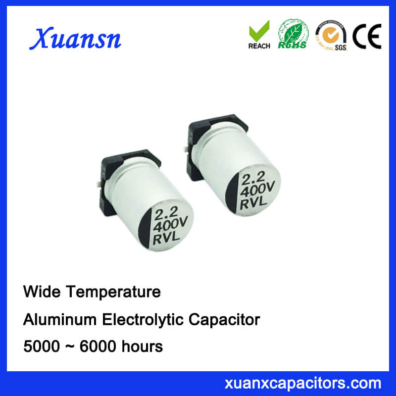 Xuansn factory manufacturing and supply of 5000H Chip 2.2UF 400V Aluminum Electrolytic Capacitor.
