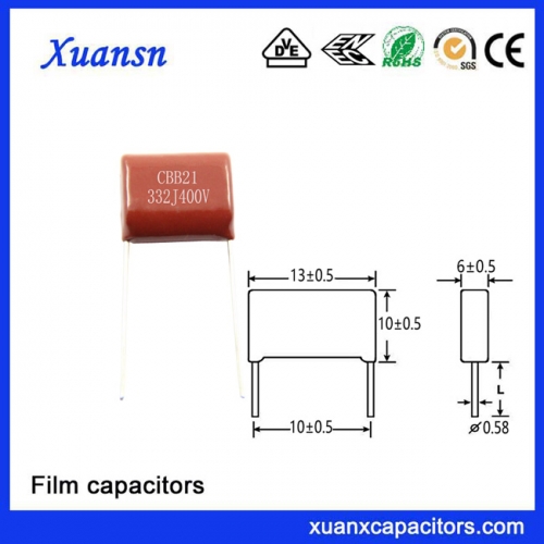 682J 250V film capacitor has the characteristics of high heat insulation, low consumption and low internal temperature rise. Install with radial lines and hidden holes. Good stability and excellent frequency characteristics.Widely used as various electronic filters, DC blocking, inserting interposers, decompression voltage conversion, DC and pulse circuits, especially suitable for various energy saving lamps and electronic rectifiers.