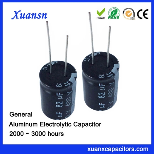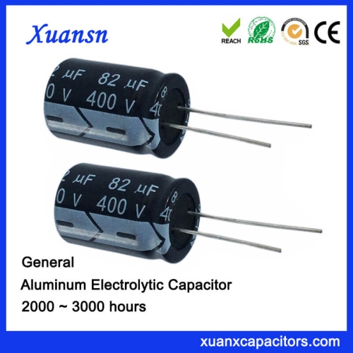 82uf 400v Aluminum Electrolytic Radial Capacitor , our general size have 16*30mm and 18*25MM, its ripple current is 403 mAmrs at 85℃ 120Hz. And its load life is 3000 hours at 105℃.