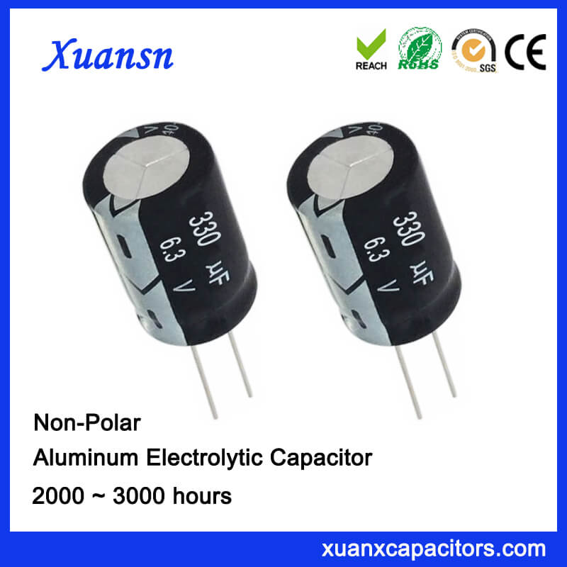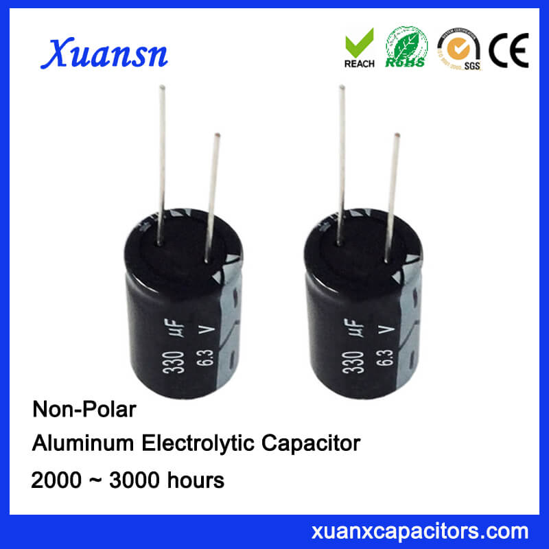 Radial Alulminum Electrolytic Capacitor 330UF6.3V is our 2000 to 3000 hours non-polarity series. The non polarity radial alumium electrolytic capacitor is used in circuits with reversing polarity