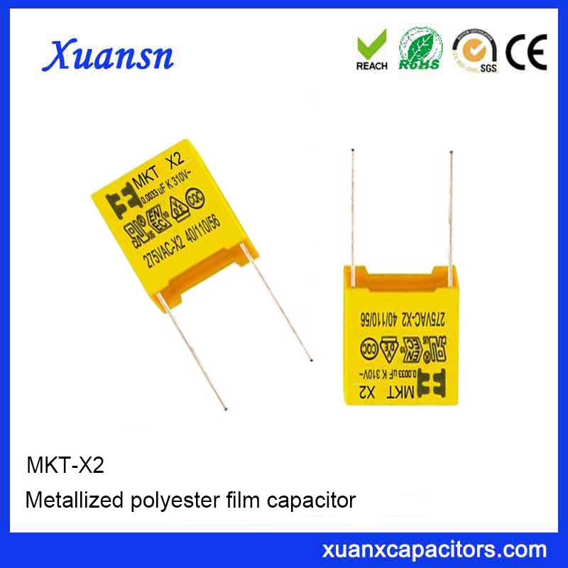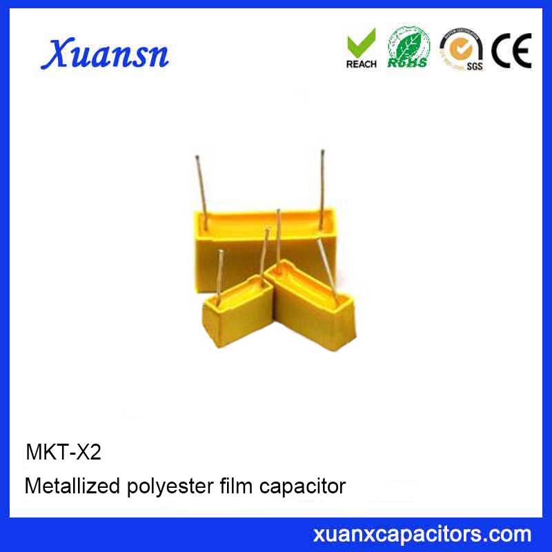 X2 Film Capacitor 332K Is a Metalized Polyester Film Capacitor, packaged in a plastic case, with good size consistency.