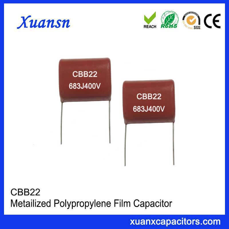 CBB capacitor CBB22 is wound by metalized polypropylene film, the end is sprayed with tin-zinc solder, and the flame retardant epoxy resin is encapsulated. It is widely used in high frequency, DC and pulse circuits.