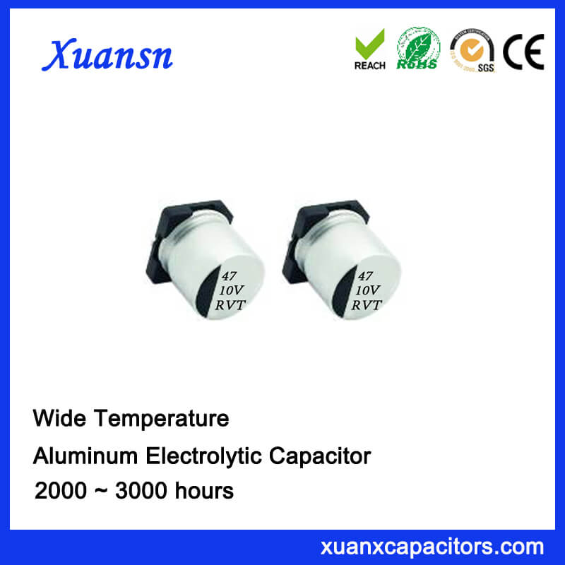 SMD 47UF 10V Electrolytic Capacitor is our Standard 2000 to 3000hours series. The SMD aluminum electrolytic capacitor is suitable for suitable for reflow soldering and high density surface assembly.