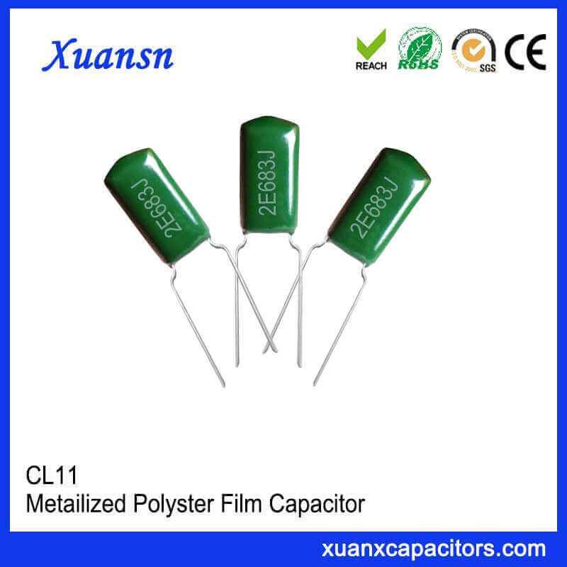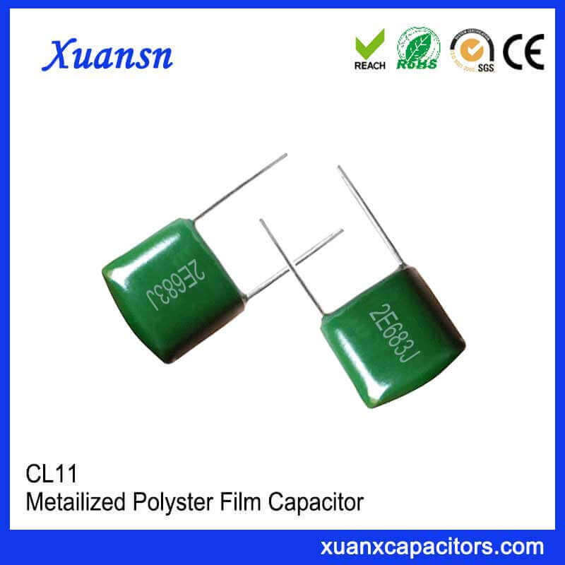 CL11 polyester film capacitor 683J250V polyester capacitor is an indispensable basic component in electronic products. It acts as a bypass and coupling for filtering, oscillation, power decoupling, pulsating signal in the circuir
