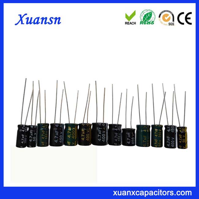 Electrolytic Capacitor 4.7UF, small capacity, small volume. The minimum size can be 4*5mm. Load life up to 105 ° C 12,000 Hours. Applications range from small household appliances to high-end precision medical equipment.