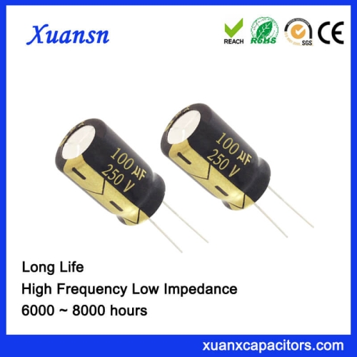 Xuansn factory manufacturing and supply of Electronics Aluminum Electrolytic Capacitor 100UF 250V Long Life.