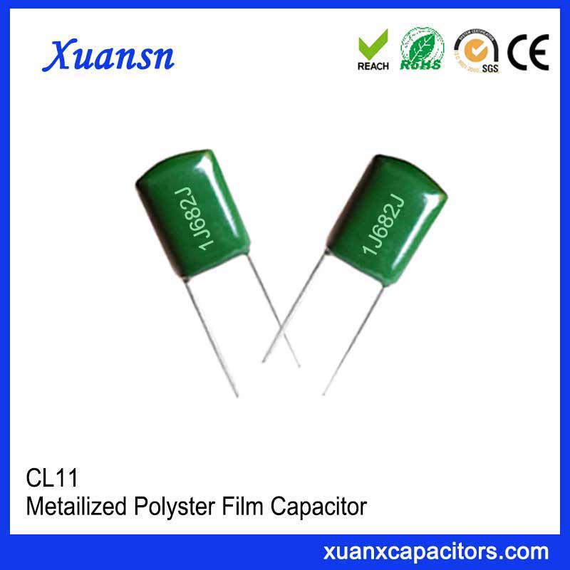 Film capacitor CL11 682J63V epoxy resin vacuum encapsulation improves the mechanical strength and moisture resistance of the product. It is widely used in the DC and pulse circuits of TV sets, radio cassette recorders and various electronic instruments.