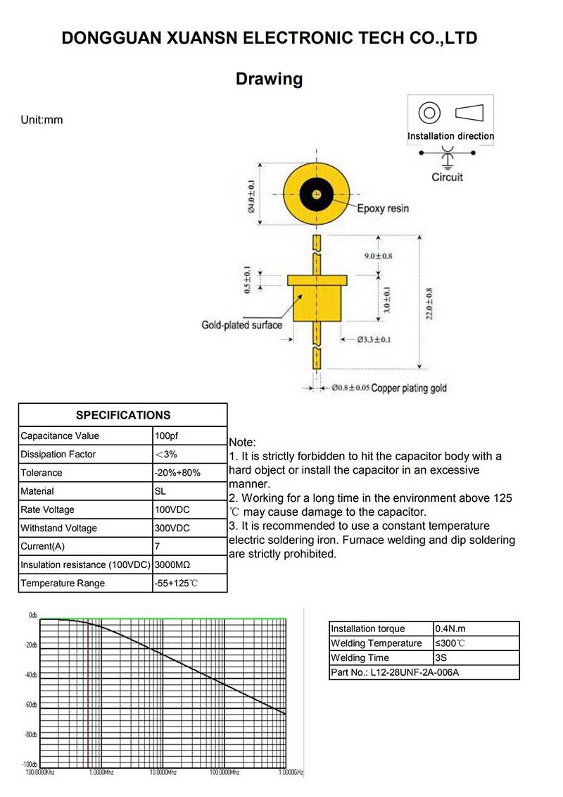 The self-inductance of Ceramic feedthrough capacitor is much smaller than that of ordinary capacitors, so the self-resonant frequency is very high. At the same time, the through-core design also effectively prevents high-frequency signals from being directly coupled from the input to the output.