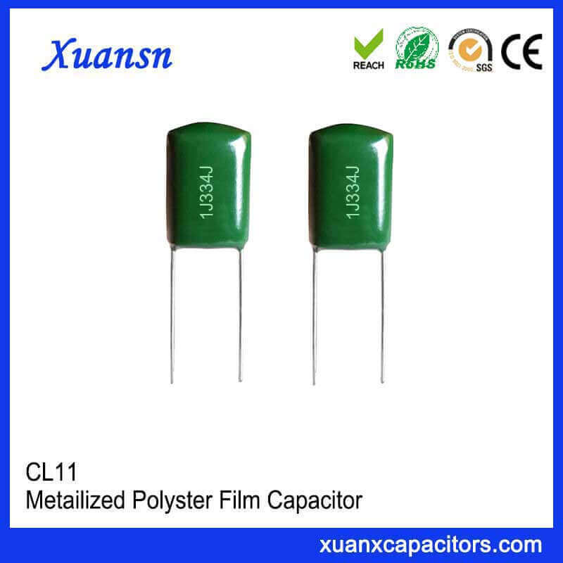The green polyester capacitor CL11 334J63V has a capacitance deviation of ± 5%, epoxy resin vacuum encapsulation, high mechanical strength and moisture resistance. Widely used in telephones, power tools and other equipment