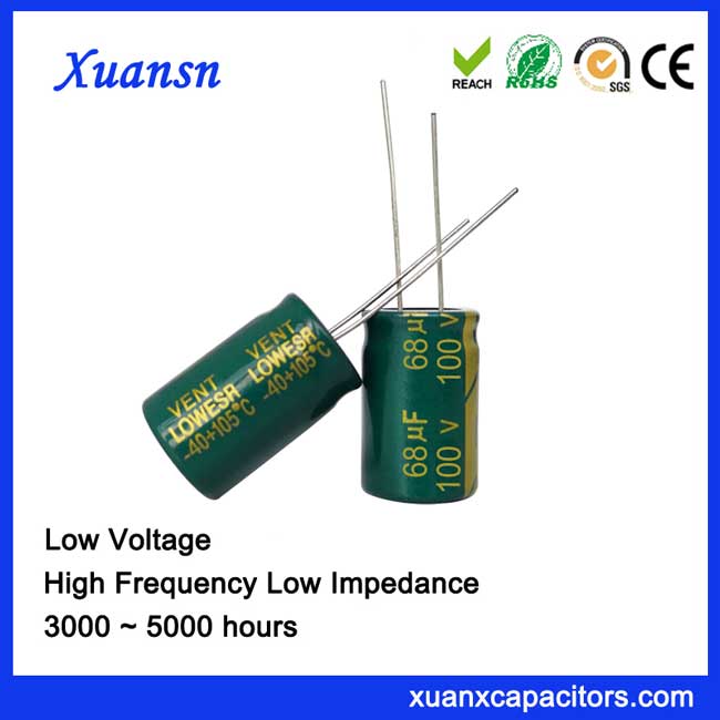 High quality electrolytic capacitor 68UF100V, low ESR, large ripple current capability, working frequency 100KHZ, selling in high-end markets such as Europe and America. Commonly used as power supply filters for yachts, golf carts and smart home appliances.