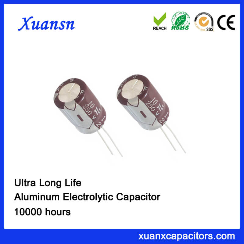 High Voltage 10000H 10uf 250v Capacitor Electrolytic is our long life series, its size is 10*16mm and 10*20mm, its ripple current is 252mAmrs at 105℃ 120Hz.