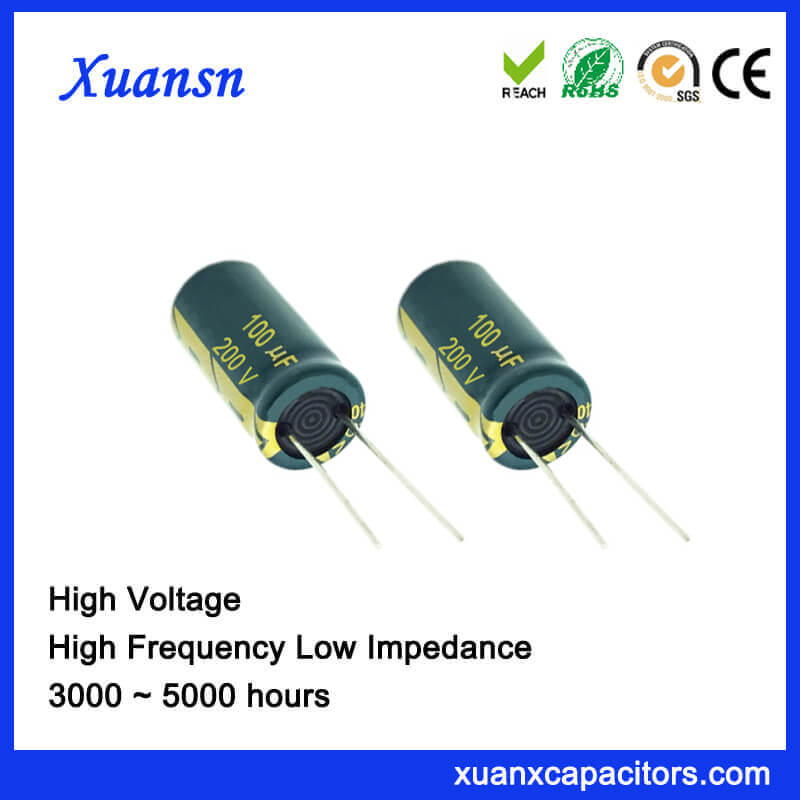 100UF 200V High voltage plugin capacitor is beneficial to improve the input capacitor filtering effect, improve the temperature rise, and increase the allowable ripple and life.