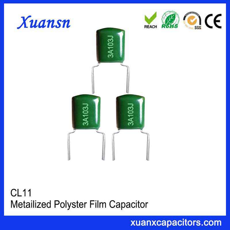 The inductive structure capacitor CL11 103J1000V is made of polyester film as the dielectric and aluminum foil as the electrode. The lead wire is tinned copper clad steel wire and encapsulated with epoxy resin.