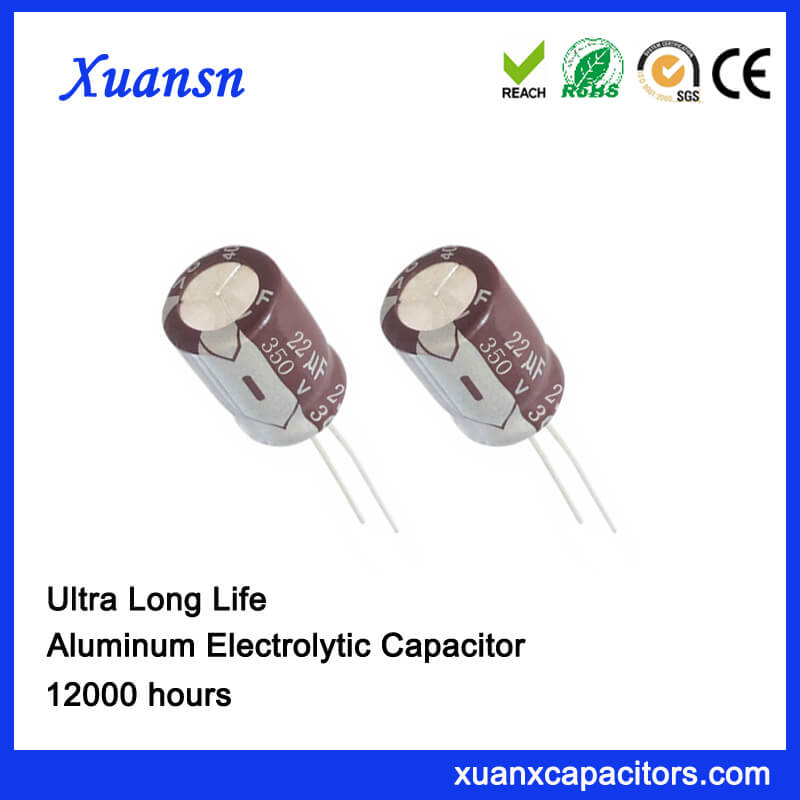 Long Life Car capacitor 22uf 350v Radial Alulminum Electrolytic Capacitor is our 12000hours long life series. The radial alumium electrolytic capacitor is suitable for LED power supply, , waterproof power supply, street lamp power supply, mining lamp power supply, ballast and household appliances.