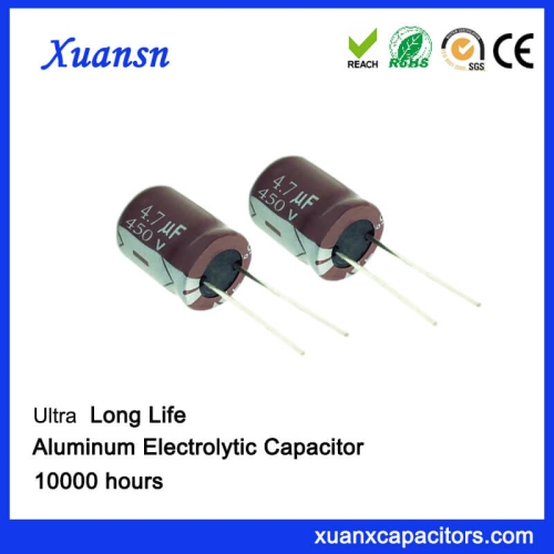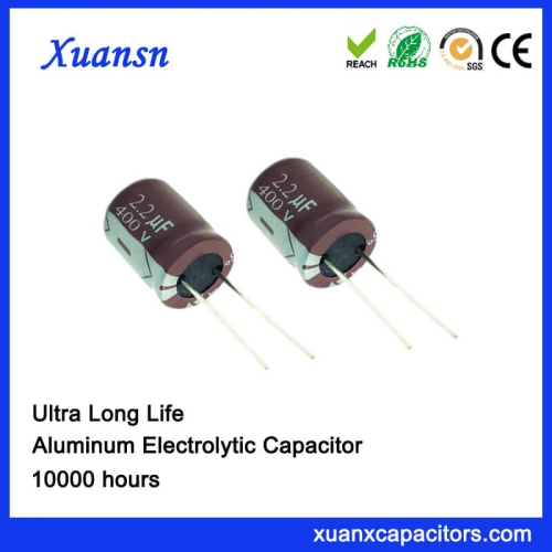 Long Life High Voltage 2.2 uf 400v Capacitor For LED Power Supply is our long life series, its withstanding load life of 10000 hours at 105°C, its size is 10*16mm, its ripple current is 83mAmrs at 105℃ 120Hz.