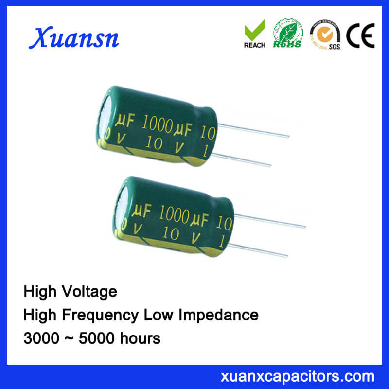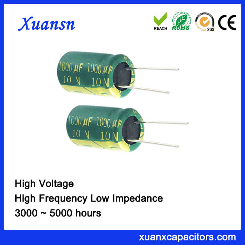 Low Impedance Electrolytic Capacitor 1000uf 10v is our high frequency electrolytic capacitor series. Its laod life is 5000hours at 120Hz 105℃