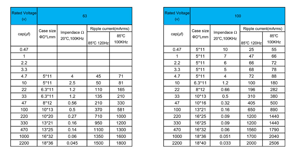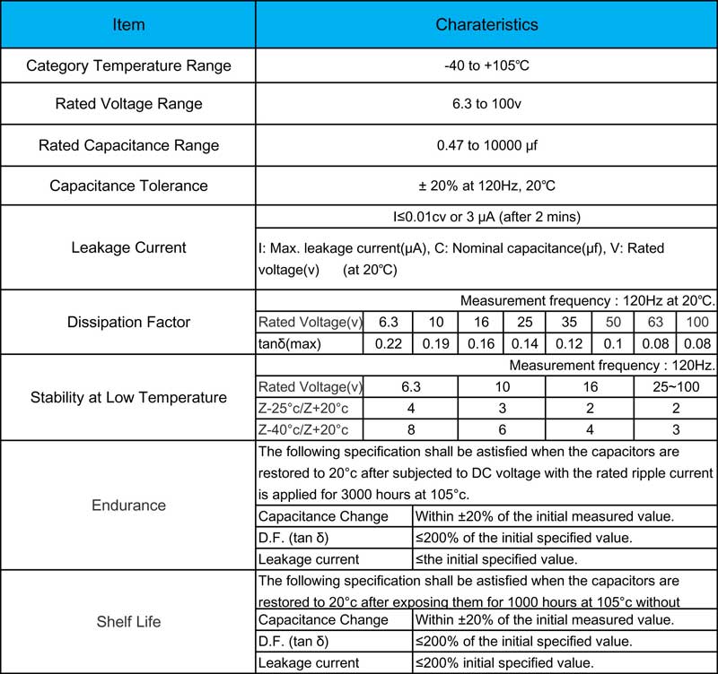 Specification of 220uF 100V Aluminum Electrolytic Capacitor