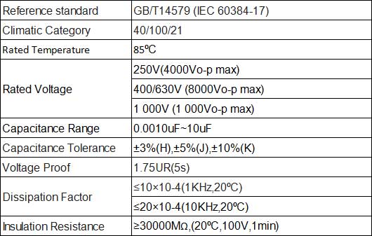 Polypropylene film capacitor 102j630v, low loss, low inherent temperature rise, flame retardant epoxy powder coating, good self-healing, non-inductive structure. Used for interference suppression, bypass, smoothing circuits, etc.